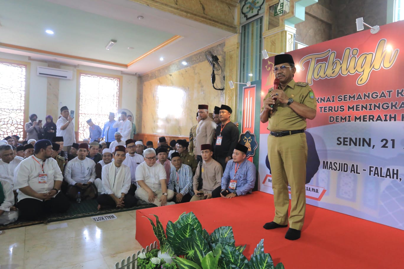 “Alhamdulillah, luar biasa sekali antusiasmenya. Pemerintah Kota Tangerang akan senantiasa mendukung berbagai kegiatan dalam masyarakat yang tujuannya untuk mempererat rasa persatuan dan kesatuan dan juga kebersamaan di dalam masyarakat,” sapa Sachrudin, kepada para jamaah yang hadir dalam tablig akbar di Masjid Al-Falah.