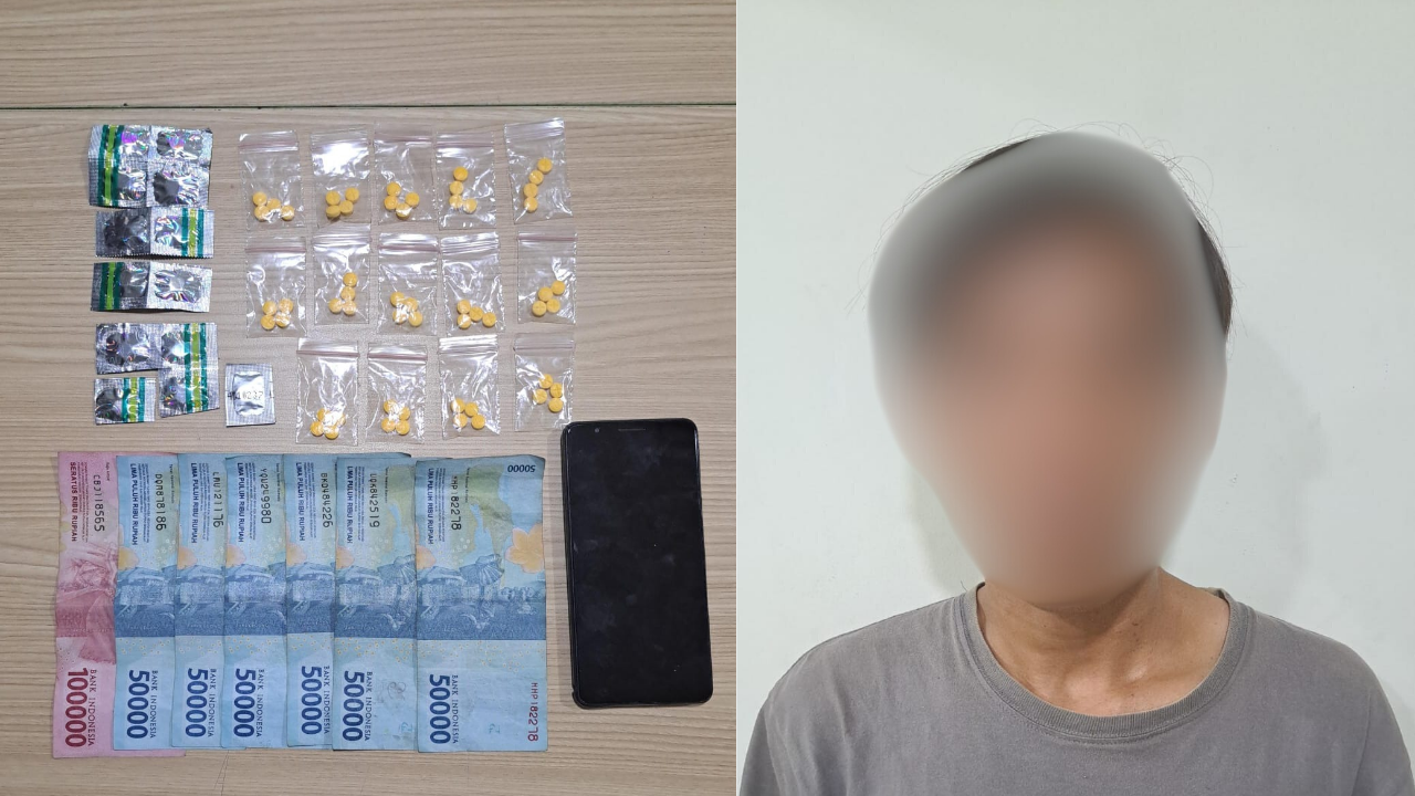 Tersangka yang diamankan adalah MS alias Apud (30), warga Kosambi, Kabupaten Tangerang. Dari tangan tersangka, polisi menyita barang bukti berupa 13 butir Tramadol HCL, 56 butir Hexymer yang dikemas dalam 14 bungkus plastik klip, uang hasil penjualan sebesar Rp. 400.000, serta satu unit ponsel Samsung warna hitam.