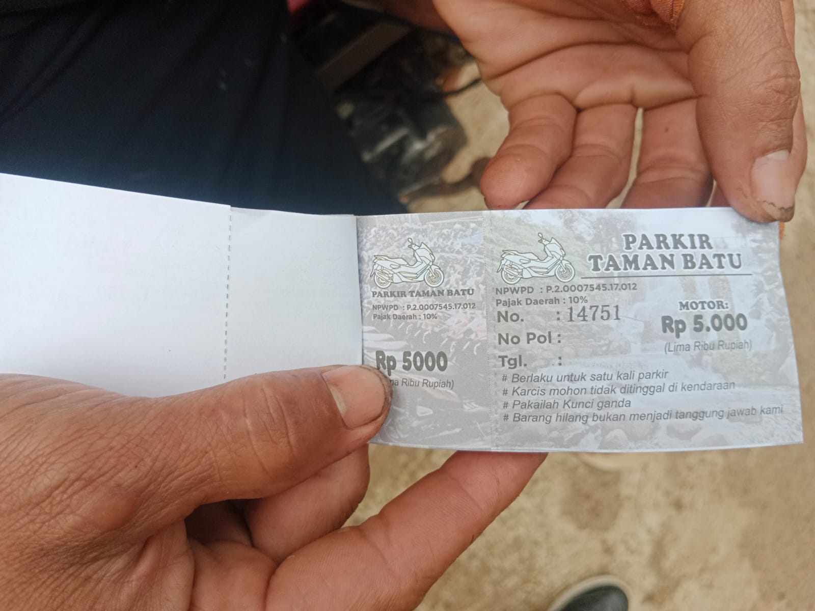 “Saya tegaskan tidak ada retribusi parkir di lokasi wisata tersebut yang disetorkan ke Dishub. Kalau resmi dari Dishub karcis parkir bukan seperti itu,” tegasnya.