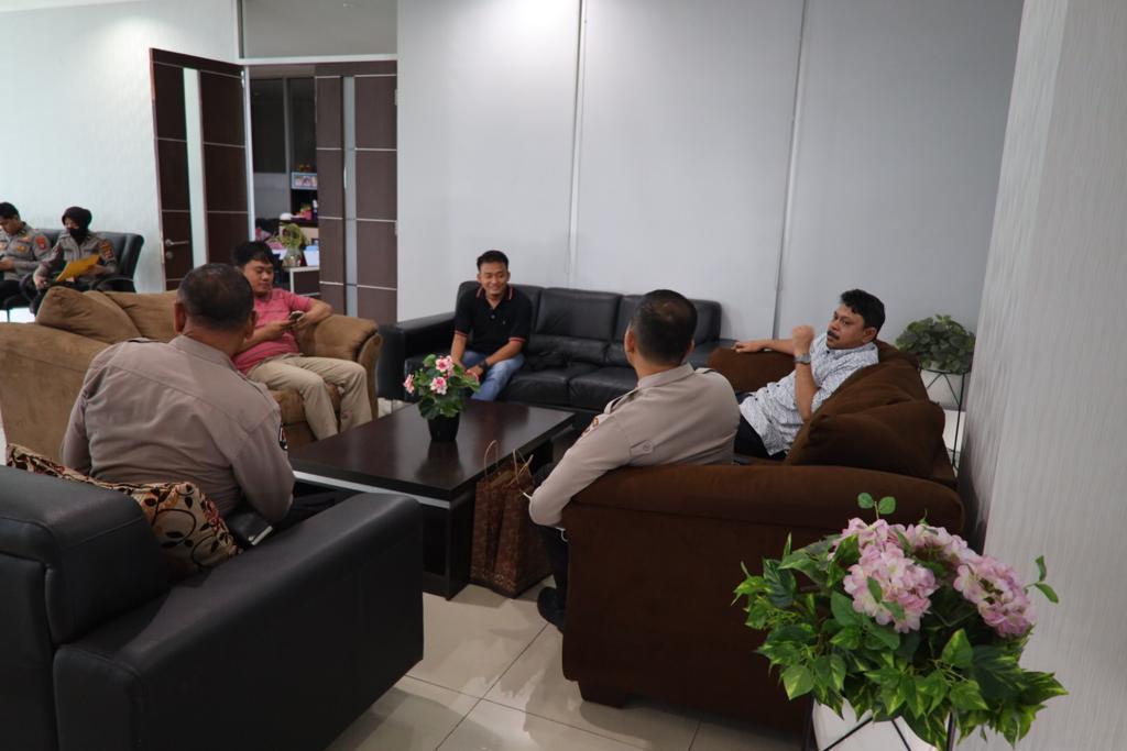 Kedatangan Kasubbidpenmas Polda Banten yang didampingi oleh Kasubbagrenmin Bidhumas Polda Banten AKP Sukarman dan personel Bidhumas Polda Banten disambut hangat oleh Direktur Radar Banten Group Mashudi yang diwakili Pemred Radar Banten Delvion Saputra, Redaktur Merwanda Yuli Yusandi dan wartawan Radar Banten lainnya.