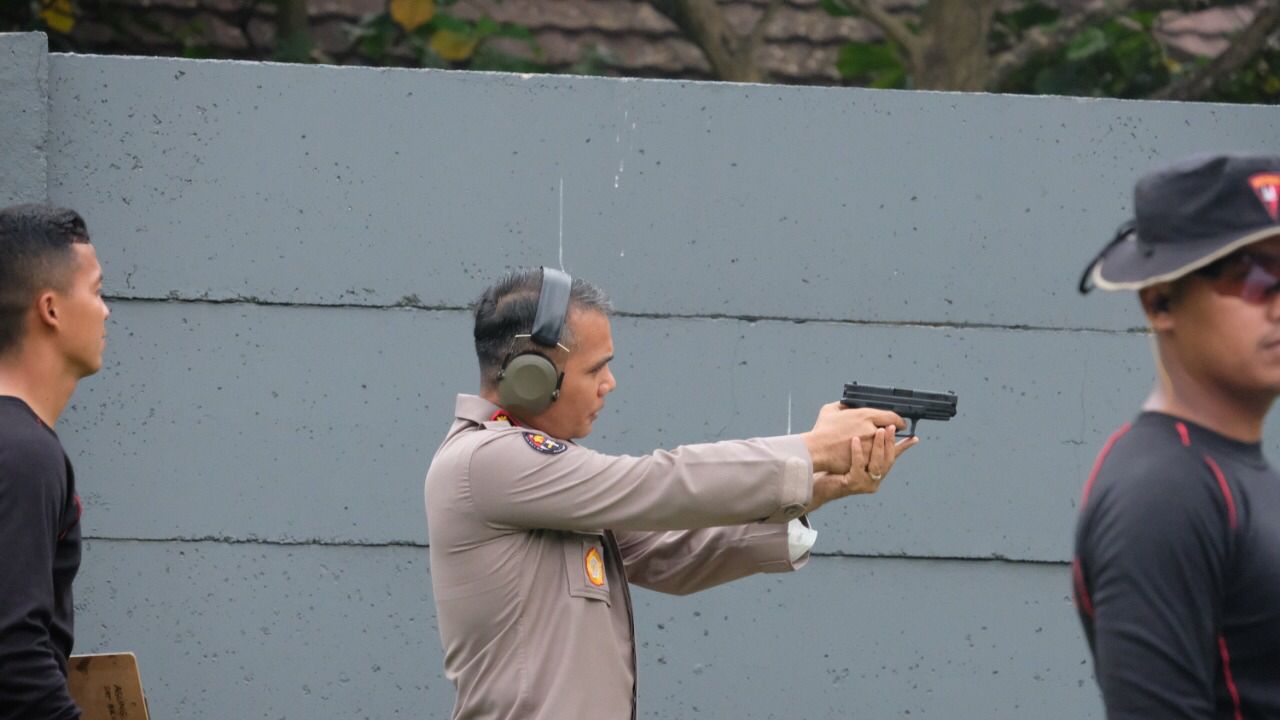 Latihan ini dipimpin oleh Kabidhumas Polda Banten Kombes Pol Shinto Silitonga didampingi Wadansat Brimob Polda Banten AKBP Hadi Saepul Rahman dan anggota Satbrimob sebagai instruktur menembak serta diikuti oleh seluruh personel Bidhumas Polda Banten.