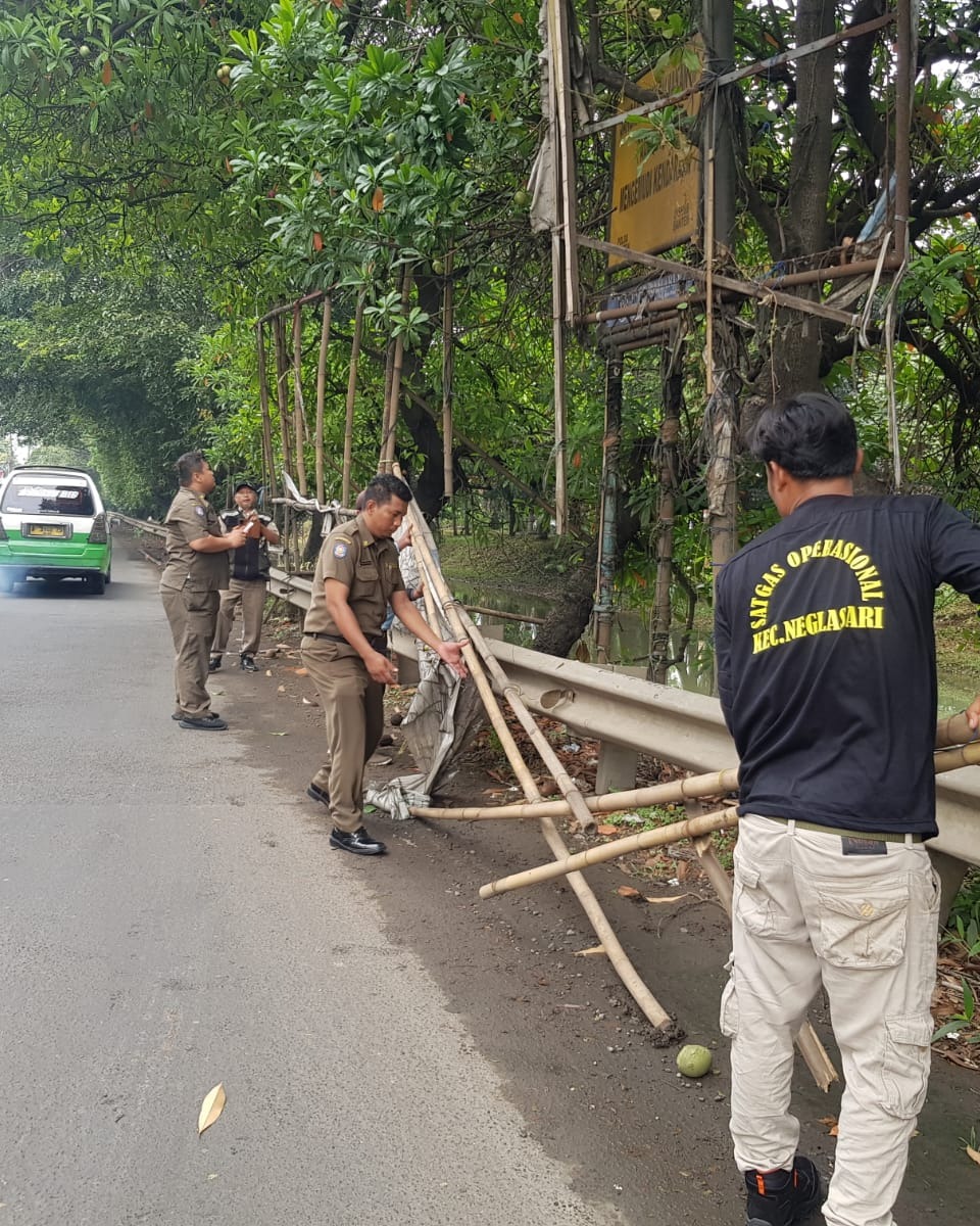 Camat Neglasari Andhika Nugraha menyampaikan, kegiatan ini merupakan bentuk komitmen Kecamatan Neglasari dalam menjaga ketertiban ruang publik serta menertibkan pelaku usaha yang belum mematuhi aturan perizinan.