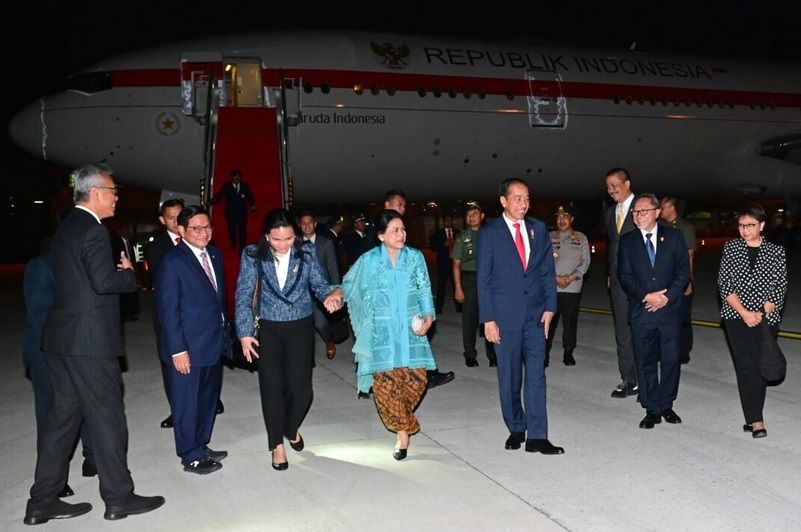 Pesawat Garuda Indonesia (GIA-1) yang membawa Presiden dan Ibu Iriana serta rombongan lepas landas sekitar pukul 15.00 waktu setempat.