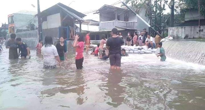 Air yang meluap dari tanggul Kali Sipon membuat genangan di permukiman warga mencapai sekitar 50 hingga 60 sentimeter atau setinggi pinggang orang dewasa.